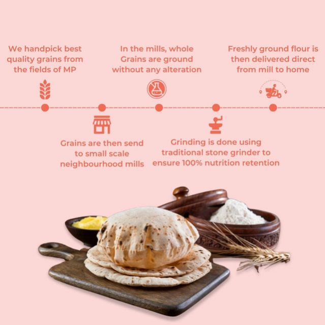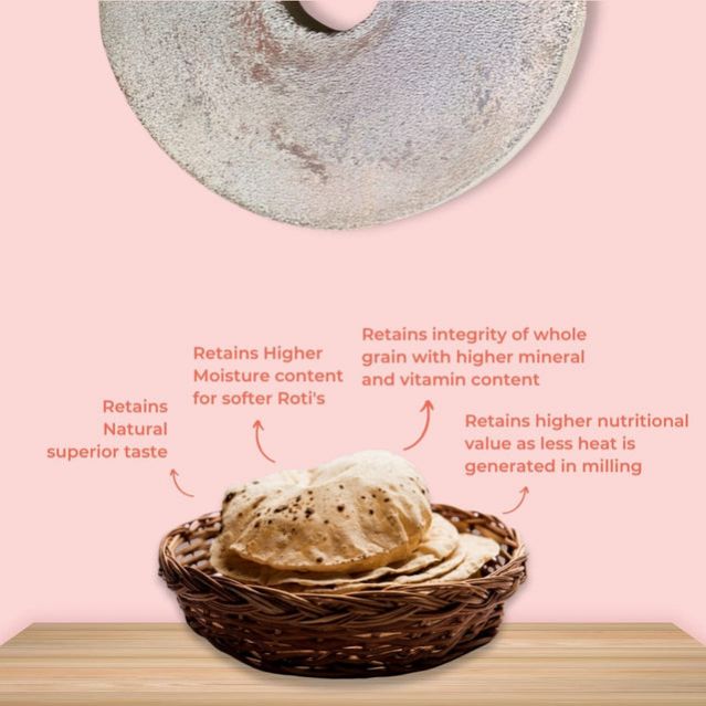 Made from everyones favourite 100% sharbati wheat grains which makes very light brown colour, soft & fluffy rotis.
